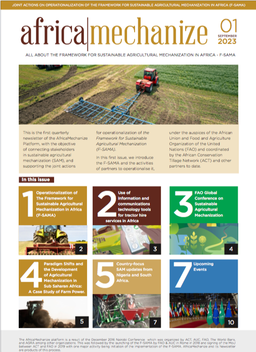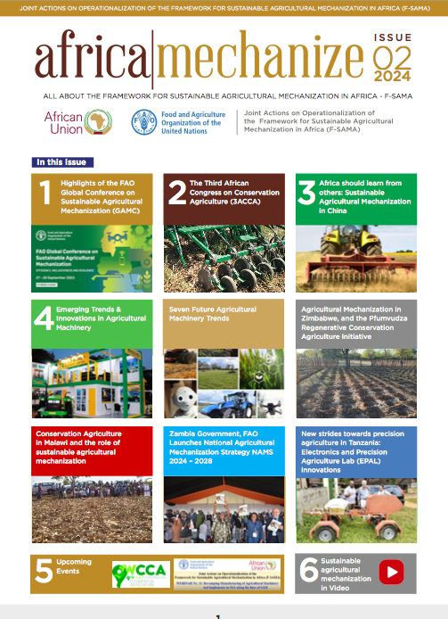 This issue highlights Africa’s push towards sustainable agricultural mechanization, focusing on the Framework for Sustainable Agricultural Mechanization in Africa (F-SAMA)